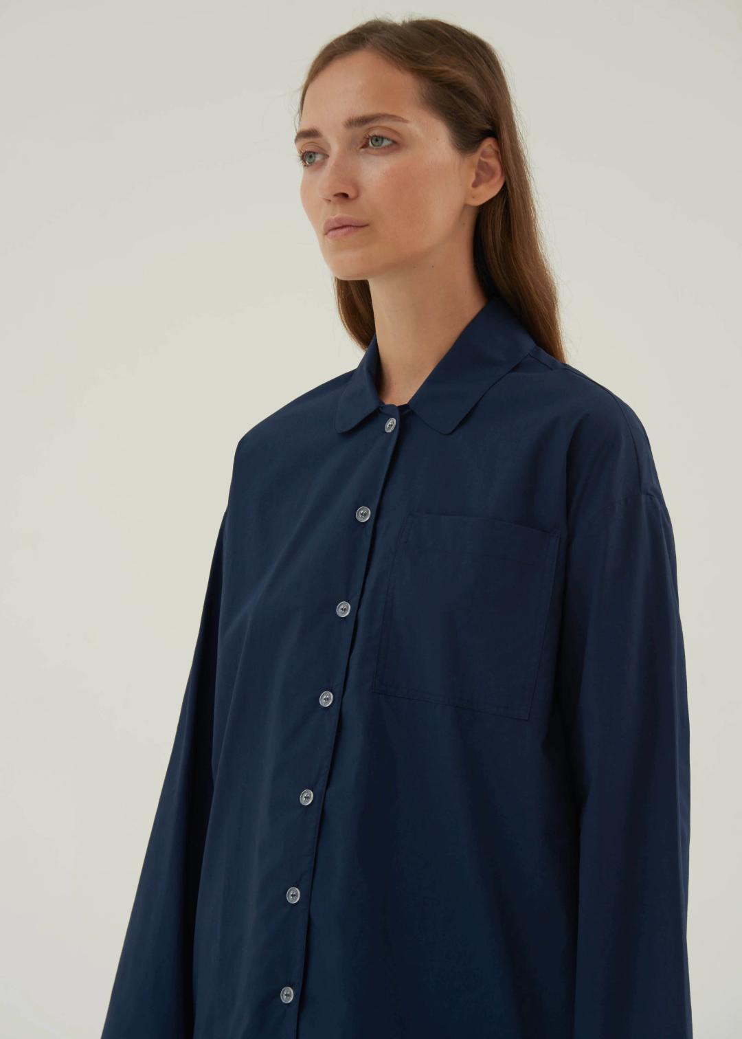 Рубашка с длинными рукавами и брюки из поплина комфортные, приятные на ощупь. Рубашка свободного кроя с прозрачными брендированными пуговицами и одним нагрудным карманом. Брюки свободного кроя, с эластичным поясом с завязками на талии и боковыми карманами по внутреннему шву. Прочная хлопковая ткань изделия выполненная в технике полотняного переплетения нитей, обеспечивает глубокий, чистый цвет даже после многих лет использования. Состав: 100% Хлопок На модели: Рубашка S, Брюки M Рост модели - 173 см Объём груди - 90 см Объём талии - 60 см Объем бёдер - 98 см